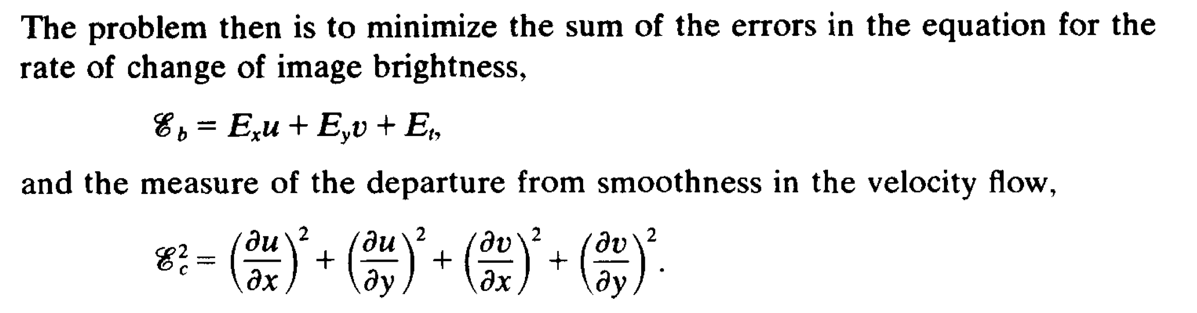 Super old-school, seminal paper on how to calculate optical flow. Primarily proposes the two constraints still mainly used today: