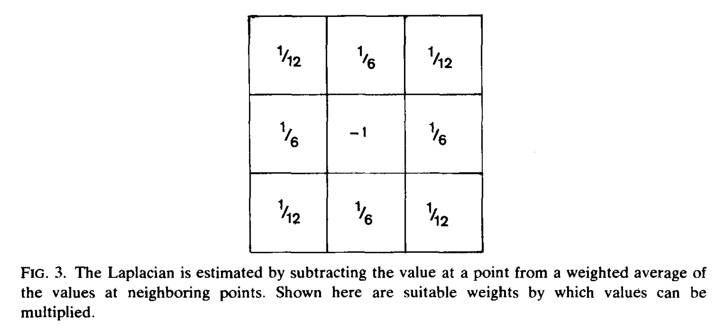The weighting in order to approximate the Laplacian looks like this, with and at the neighboring cells: