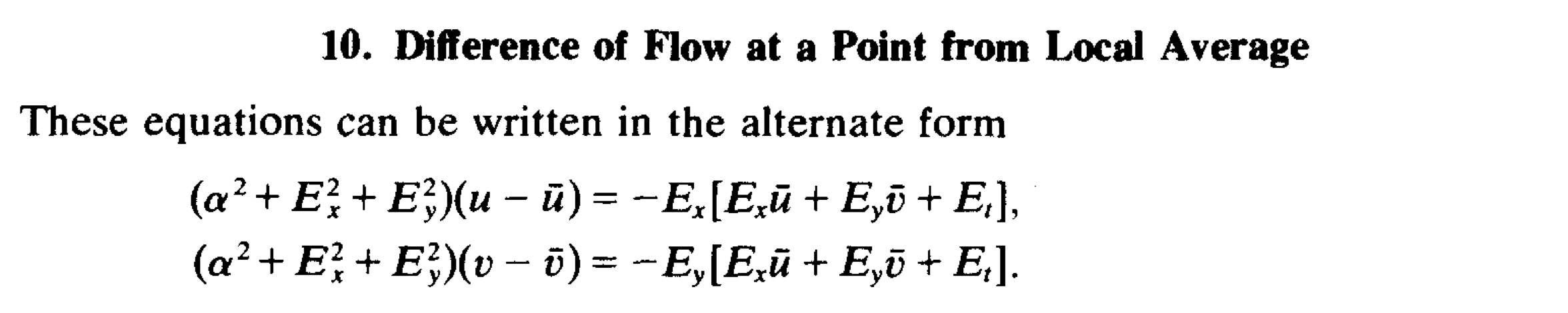 - smoothness; that most derivatives (or second derivatives) of the flow should be zero. These constraints are directly optimized for, per-image-pair, with an iterative scheme. There’s also some math (calculus of variations???) that I don’t understand. Additionally, introduces standard notation of and as and of a particle/pixel.
