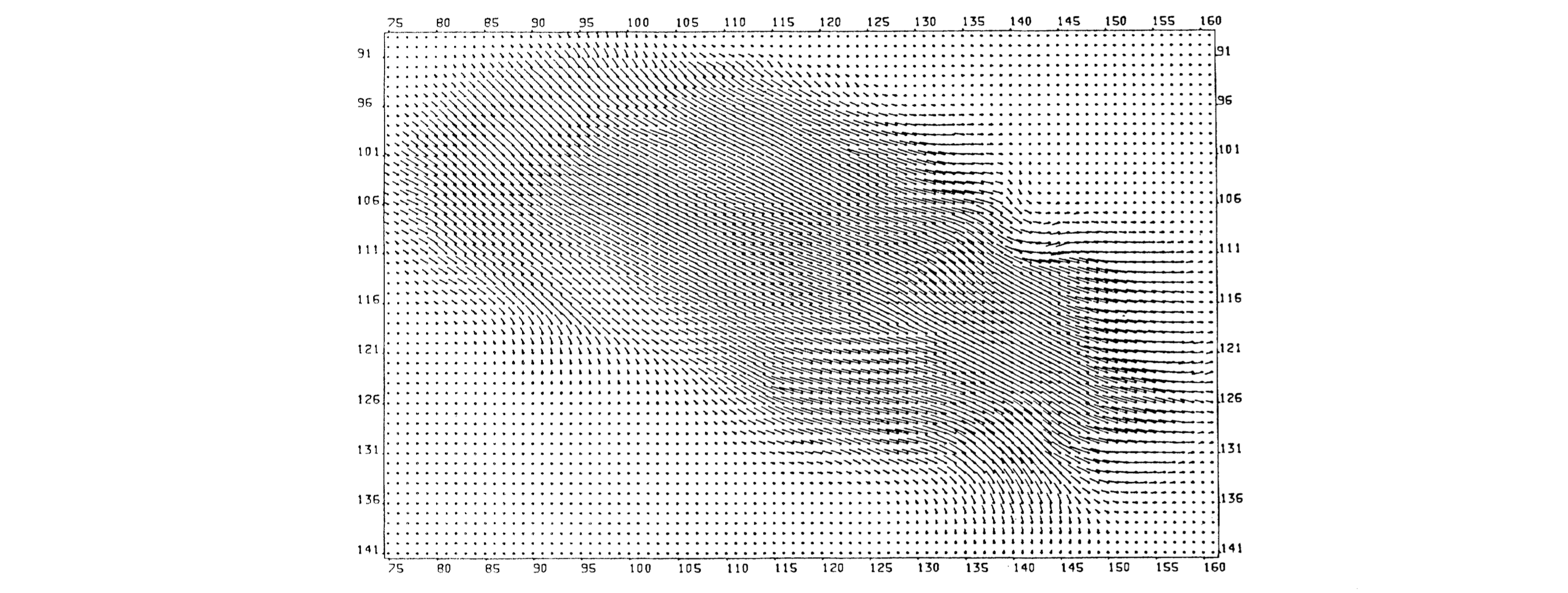 - Corners computed first. Corners with significant gray value variation are first computed, as their movement can be easily tracked, with the other areas are initially left blank. If are the eigenvalues of , corners are when (and, I assume, ), as contains values about the first- or second-derivatives at that point. The metric used to determine “cornerness” is During this computation, the smoothness weight is set to . Then, after this computation is complete, the edge flows are propagated inwards and is set upwards again.